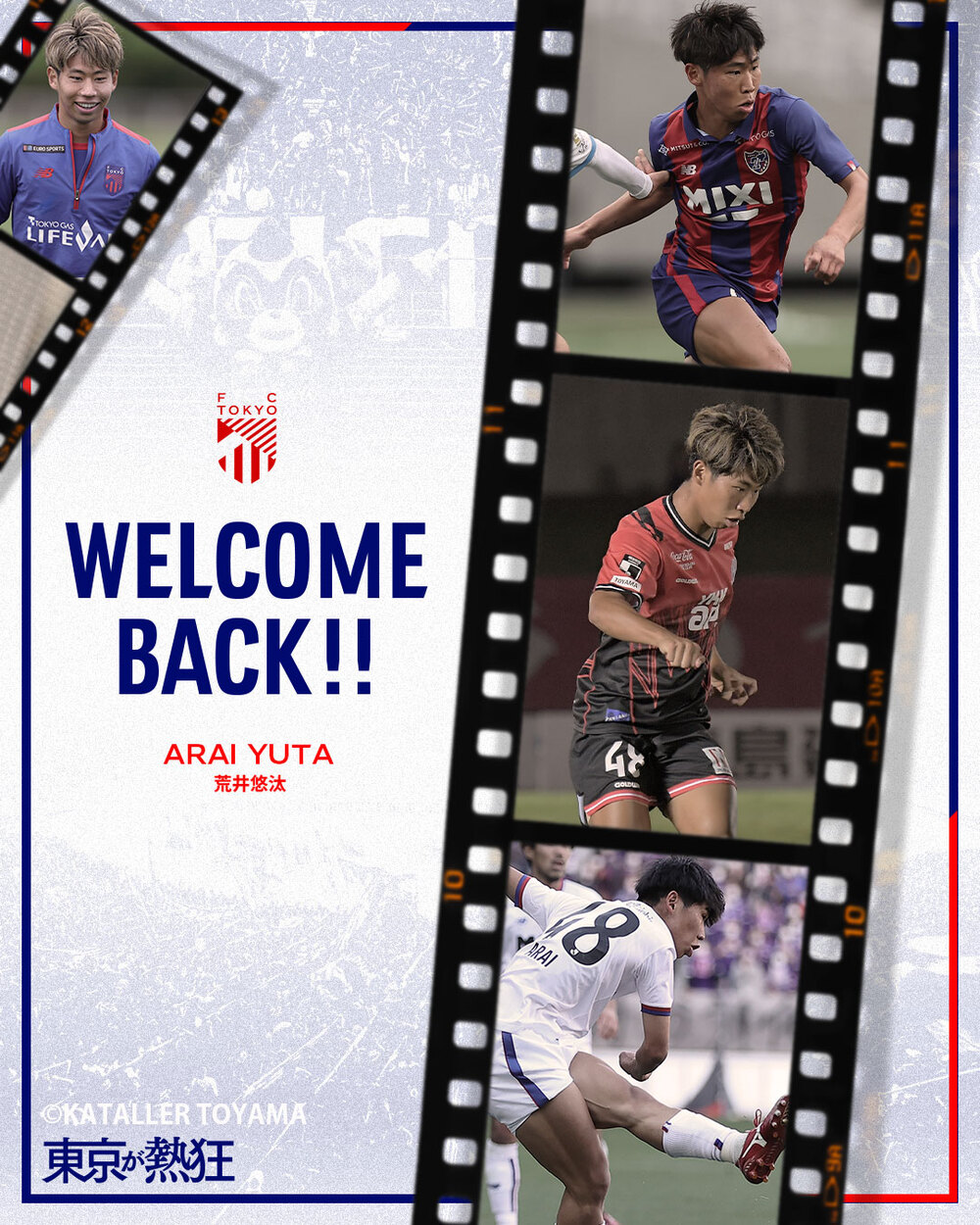 曾以育成型期限转会加盟Kataller富山的荒井悠汰选手,已决定回归FC东京,特此通知。
