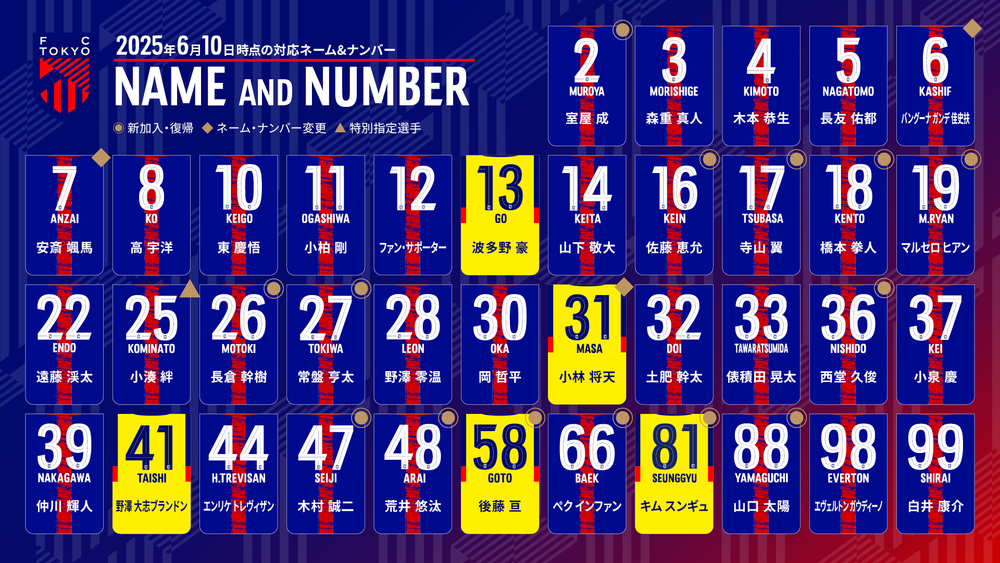 此外,已决定新增2025赛季球衣合作伙伴(京王电铁)。