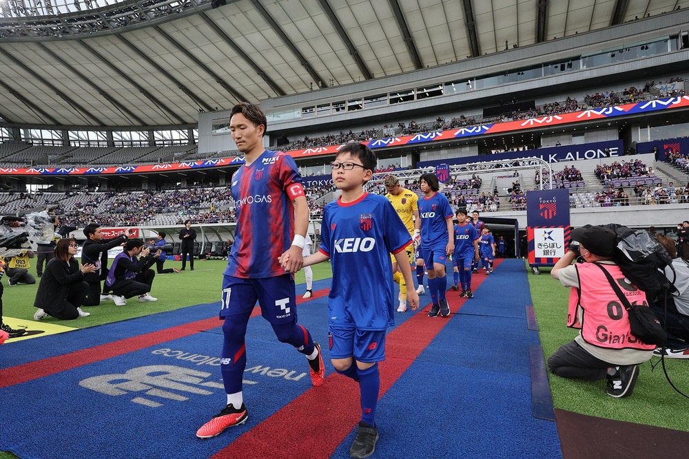 在“2025赛季FC东京主办主场比赛”期间,选手与儿童手牵手入场的Hand with Hand活动中,入场儿童的服装上将展示京王电铁的标志。