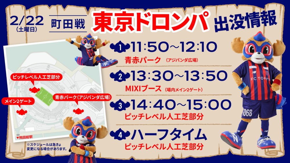 2月22日(周六) 2025明治安田J1联赛 第2轮 vs FC町田Zelvia(15:00开球/味之素体育馆) TOKYO DOROMPA将如以下所示亮相。敬请期待!