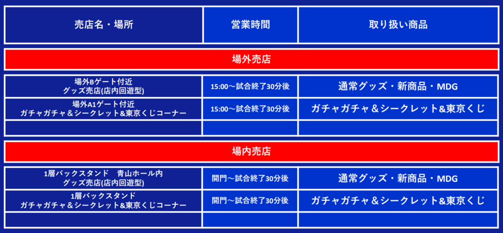 4月11日(周五)2025明治安田J1联赛第10轮 vs柏太Reysol (19:00开球/日本国立体育场)将设有商品售卖处和扭蛋区。