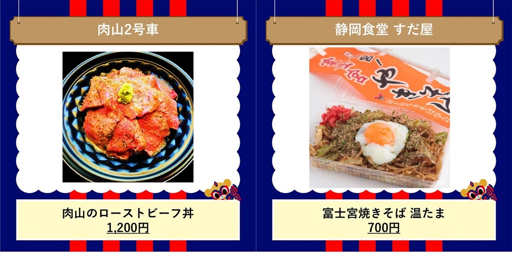 “肉山2号车”和“静冈食堂 すだ屋”将设摊。请务必趁此机会品尝!