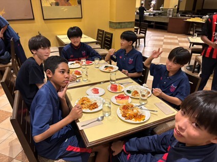 去年韩国远征首日有两名队员身体不适,但这次大家都精神饱满。队员们享用了自助早餐,味道也容易入口,看起来很安心。很多外国人主动与他们交谈,虽然语言不通,但他们不断尝试沟通的样子令人印象深刻。