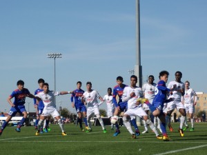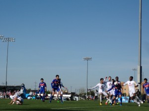 比赛开始7分钟,品田的任意球被小林(干)头球攻门,但击中了门柱弹出。