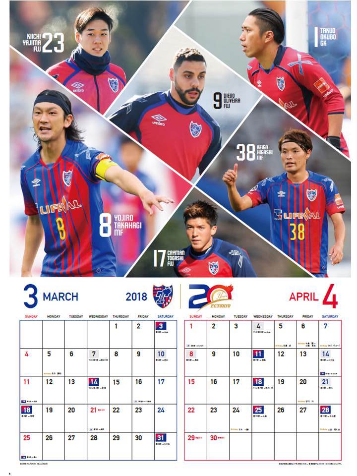 「FC东京官方赛季日历2018」