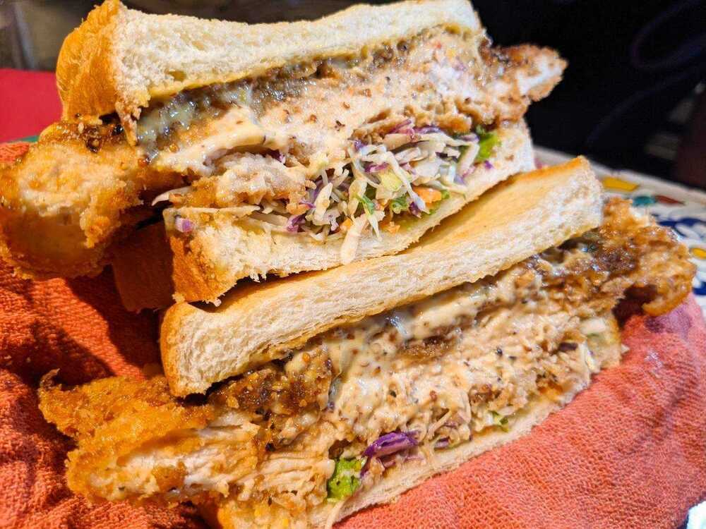 ・超大份!溢出来了!塔塔酱炸猪排三明治 800日元(照片)