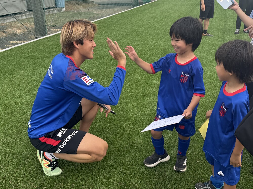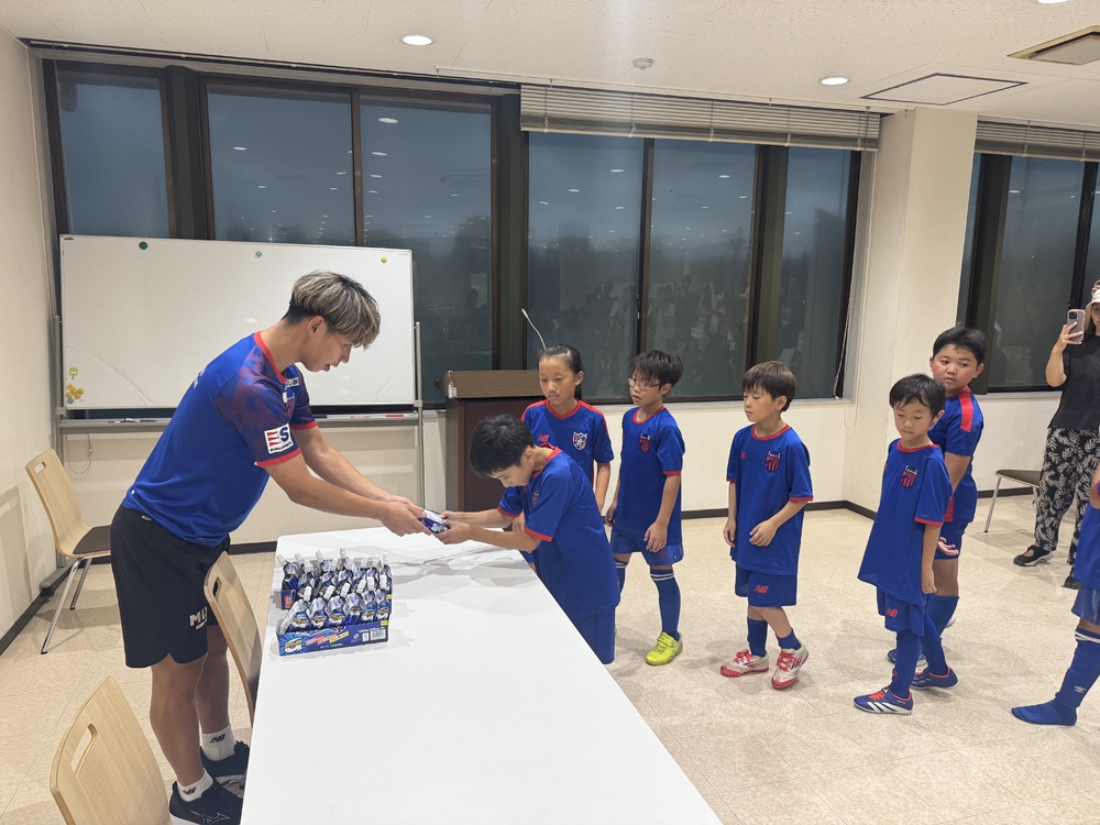 西堂久俊选手向学校的学生们传达了这样一条信息:“多多练习,多多踢球,足球技术就会提高,所以今后也请多多练习!”