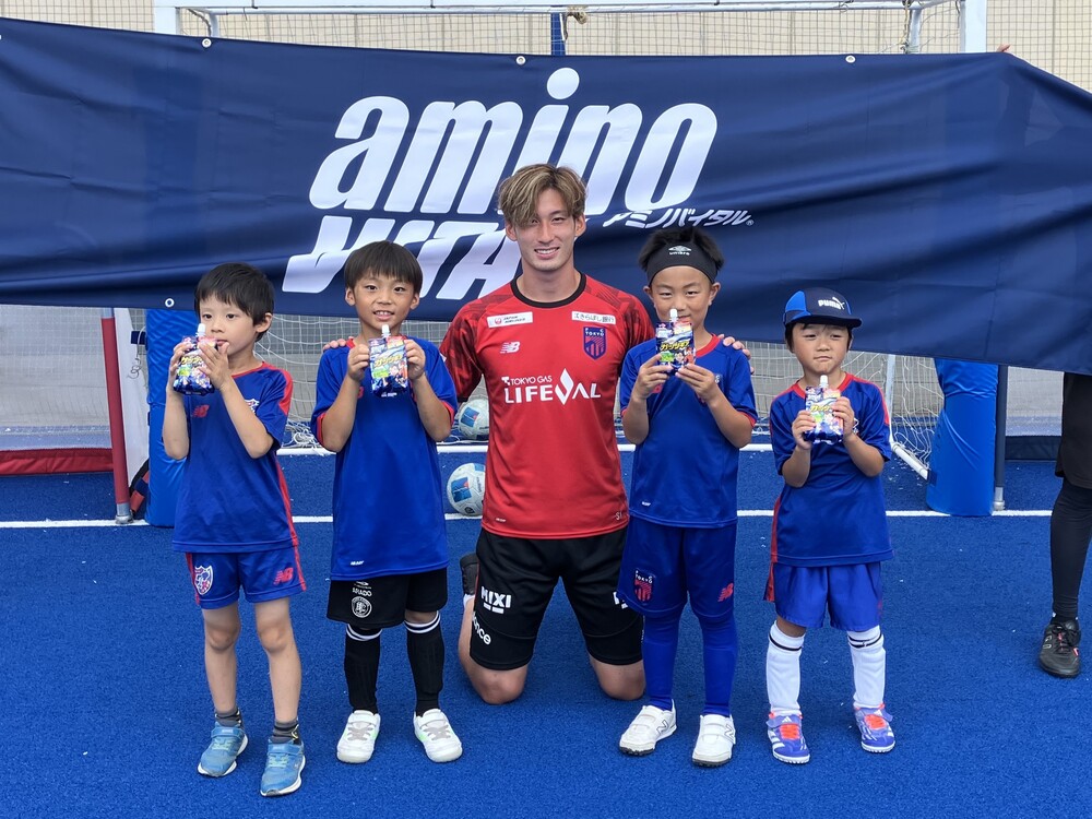 直接向学校的学生们赠送了由味之素株式会社提供的氨基维他命果冻饮料“Guts Gear”!