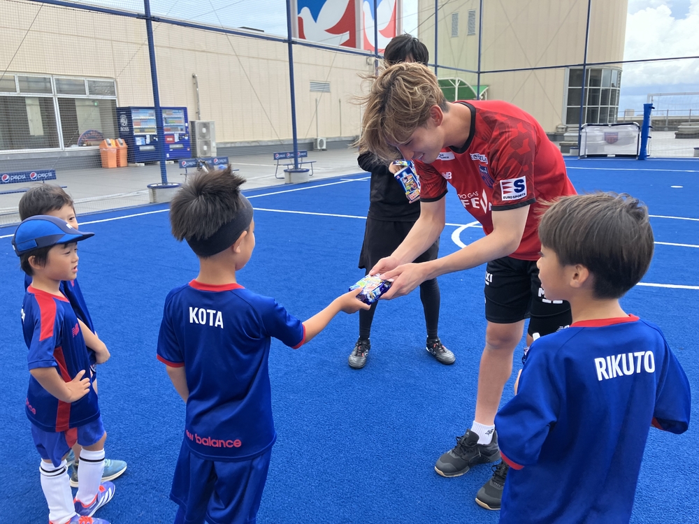 与平时非常喜欢射门的孩子们进行射门对决,进球时他们非常开心的样子令人印象深刻♪