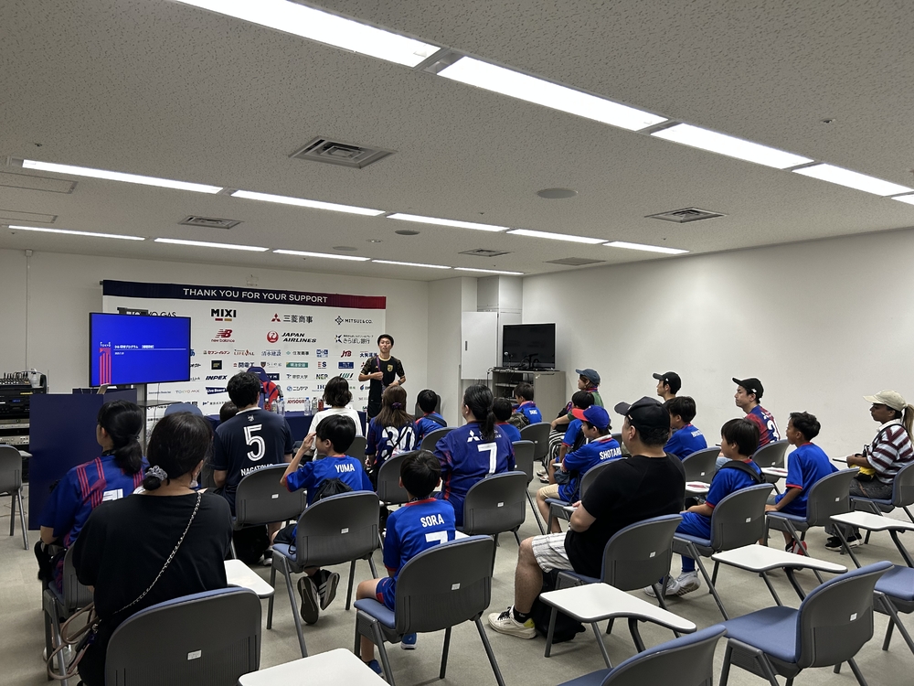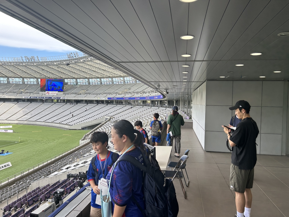 参观了平时无法进入的味之素体育馆内部。在采访室里,虽然学校的学生们表情有些紧张,但他们享受着仿佛成为教练的感觉!