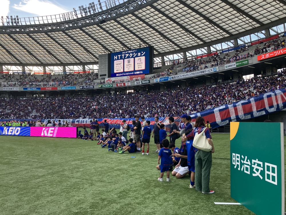 比赛当天,从开球前开始,尽管夏日的炎热依然残留,参加的学校学生们依然用认真专注的目光感受着球员的表现和味之素体育馆的热烈气氛,直到比赛结束。
