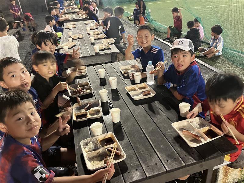 在可以看到大海的绝佳位置,孩子们对美味的蔬菜和肉类兴奋不已!