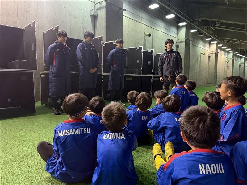 在儿童比赛结束后,顶级球队的山口太阳选手、后藤亘选手、北原槙选手现身学校学员面前!选手们传达了训练、睡眠、饮食的重要性,并激励道:“这次站立的味之素体育馆球场,下次让我们一起作为职业选手站在那里吧!”这使得学员们对足球的热情和对FC东京的情感更加高涨。