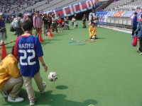 イベントの方では、来場してくださった子どもたちに色々な形で”Join”していただきました。チームのインタビュー用パネルをバックに写真撮影をしていただける「写真でJoin」コーナー。フードコートをご利用の皆様にファミリーJoinデイズ特製グッズ「Mr.ピッチオリジナルレジャーシート」をプレゼントする「食べてJoin」 コーナー。そしてキックターゲットなどのゲームと鬼太郎にちなんだゲーム「立てろ!妖怪毛針(けばり)ゲーム」などで「鬼太郎とJoin」コーナーとその他、鬼太郎にちなんだプレゼント企画などもあり、この日は盛りだくさんの内容で、たくさんの子どもたちの笑顔を見ることができました!