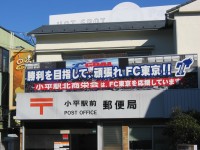 当時はJ1 2年目、東京スタジアムをホームにしていましたが、小平市内ではあまり知られていませんでした。それでも12月に練習場の移転を小平市役所に報告に行く頃には、市内のあちこちに街路灯フラッグが付き、小平駅前の商店街には、『歓迎 FC東京』という横断幕もかかりました。