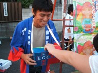 そして3ヵ所目、僕が参加することになっていた仙川のお祭りでは副会長のプライドもあり、さらに好成績を目指して参加しました。しかし、そのお祭りではメインイベントにゴーレンジャーなどのライバルが出現し、あえなく撃沈。子供の視線は舞台にそそがれ、僕らの呼び掛けは戦隊ものの効果音にかき消されていました。
