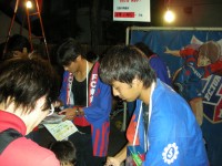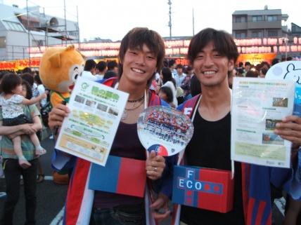 活動時間は1時間と決めていたのですが、粘りに粘り1時間半。はっぴを羽織り人ごみの中を練り歩いた僕らは、汗まみれになったもののゴーレンジャーにすべてをもっていかれました。(笑) それでもかなり多くの方に募金をしてもらうことができ、「活動の告知を見たので募金しにきました」と言う方や「いつも試合を観に行っています」と言ってくれる方がいたので、色んな意味ですごく助けられました。本当にありがとうございました!!こういったことはなかなか経験することができないので、参加できてとても良かったと思います。