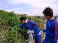 選手とサポーターの皆さんとで多摩川の周りをゴミ拾いしました!多摩川の周辺は凄く綺麗でした。思っていた以上にゴミが少なかったです。
