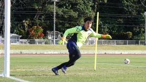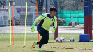 身長はFC東京のGKのなかでは一番小さい183㎝で、同い年の波多野豪選手とは14㎝の差があります。