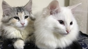 実家で飼い始めたのは、2匹とも「スウェーデンジャンフォレストキャット」という種類の猫で、色はブルーマッカレルタビー&ホワイトとホワイトソリッドです。