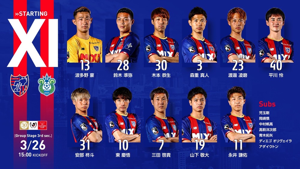 日本代表在卡達確定晉級世界盃兩天後,東京在主場味之素體育館進行了盧梵盃小組賽第3戰。迎戰的是位居小組首位的湘南Bellmare。作為並列第3的東京隊,這場比賽是為了突破小組賽,無論如何都必須取得勝利的一戰。