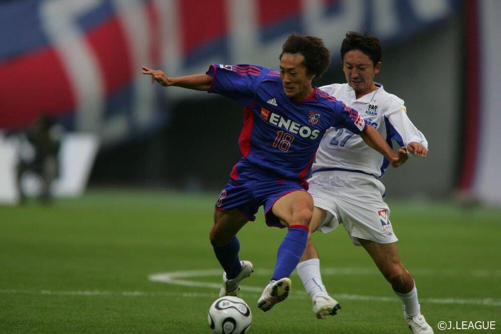 我不記得自己出賽時贏了多少場,但我作為東京隊一員被接納是在聯賽中,說是2002賽季的Sanfrecce廣島戰,不過Amaral應該記得。那是戶田先生上演帽子戲法的比賽。我轉隊後當時有參加那屆Nabisco杯,但因為世界盃聯賽中斷,聯賽重新開始後,我希望能被認可為球隊一員,在對廣島的比賽中,我也能發揮想要的表現,球隊也贏了,而且是在味之素體育館。那場比賽對我來說意義重大,終於在聯賽中被認可為東京隊一員。那是一場愉快的比賽,也讓我感受到自己能在這支隊伍變得更強,未來想讓球隊更強大。那場比賽是我第一次體驗像巴西日那樣的比賽。