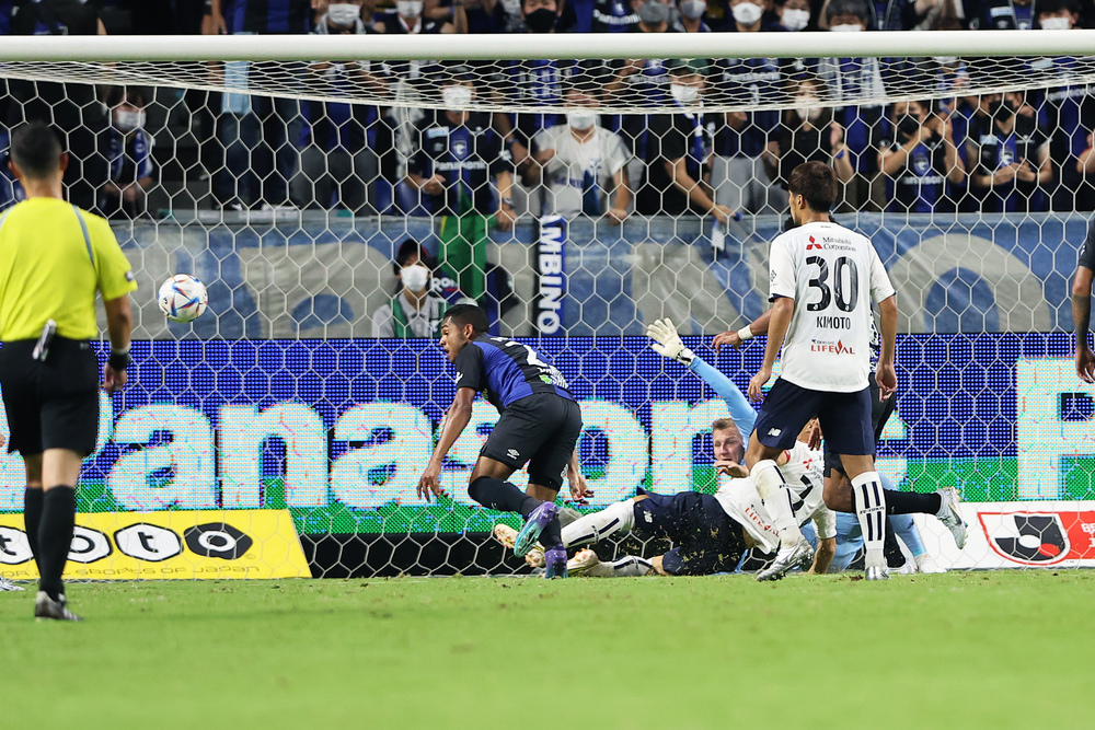 在被壓制的局面中,下半場第6分鐘,抓住瞬間的空隙。從左側深處跑入的Adailton選手傳中到禁區前,Luiz PHELLYPE選手跟進後用腳跟射門。雖然可惜未射中目標範圍,但這兩位從上半場就創造機會的選手,逼近了Gamba的球門。
