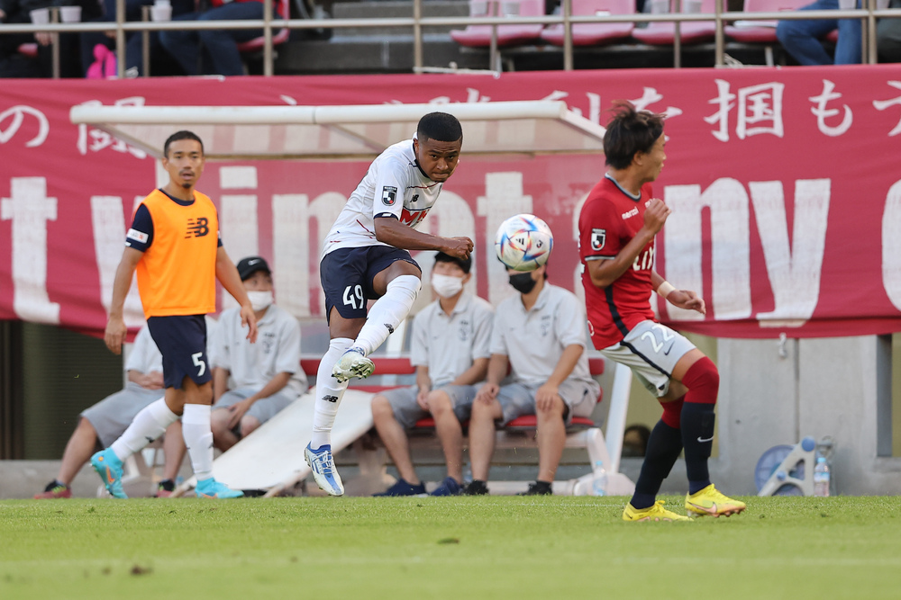 從右側的中村帆高選手與渡邊凌磨選手的組合突破鹿島陣地的場面,以及中場中央的松木玖生選手向左側移動,與Kashif BANGNAGANDE選手和Leandro選手一起在高位進攻的情景出現了。