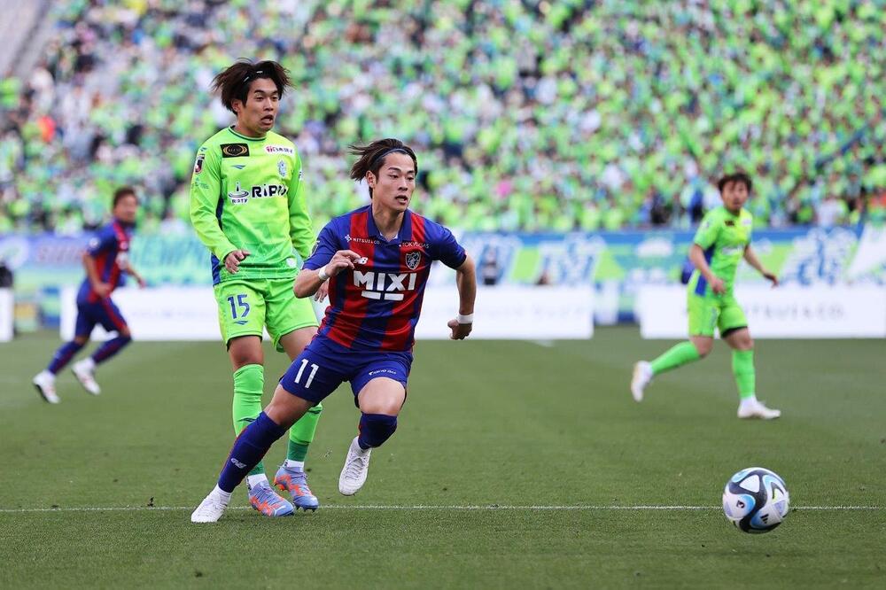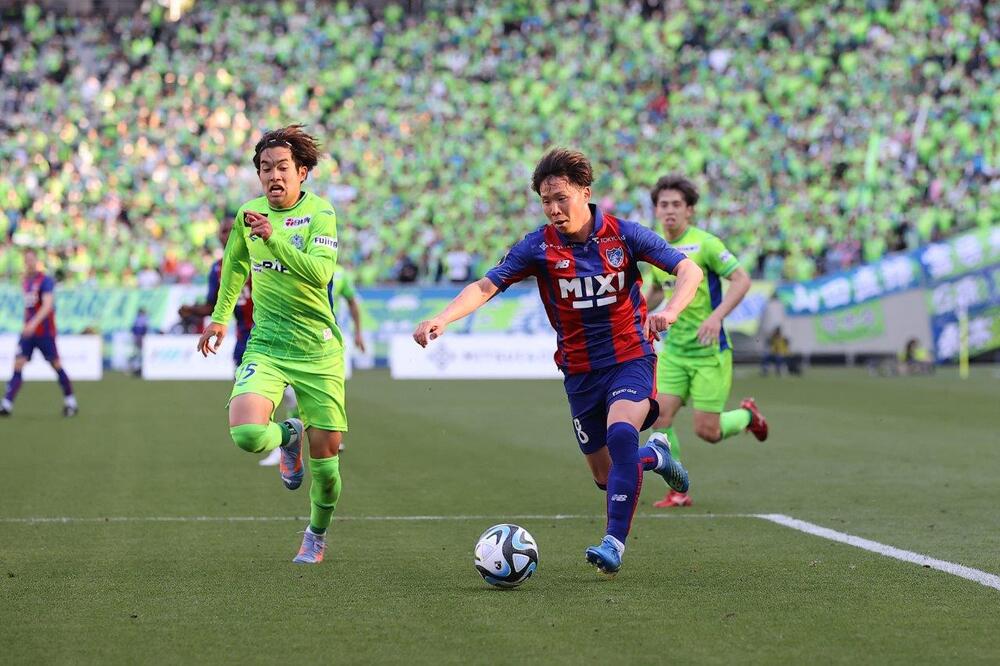 比賽進入膠著狀態的前半30分鐘,局勢開始改變。右路由仲川輝人選手帶球突破並切入中路。傳出斜線傳球後,在禁區內接球的松木玖生選手帶球縱向突破並用右腳射門。雖然一度被對方守門員封堵,但撿到散落球的仲川選手停球後凌空抽射,東京成功先馳得點。
