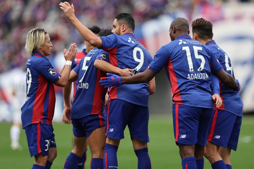 雖然創造了多次機會但未能把握,直到上半場41分鐘攻勢終於開花結果。原川力選手將縱向傳球送到在禁區中央附近站位的Adailton選手。Adailton選手看到Diego OLIVEIRA選手的位置後,帶著防守球員用腳跟將球留給他。隨後Diego選手帶球衝刺,用左腳將球送入球門左下角,東京隊終於取得夢寐以求的領先進球。