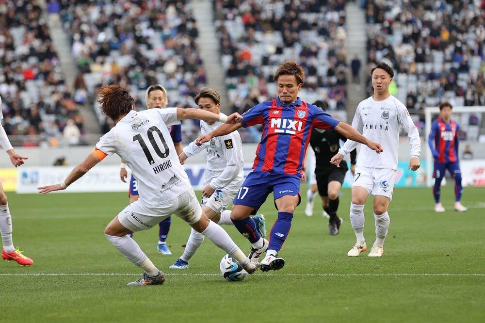 掌握攻擊節奏的東京接連創造機會。上半場40分鐘,從右側突破,在禁區內製造起點,然後傳向左側,跑動中的德元選手瞄準中距離射門,但球偏離了球門上方。