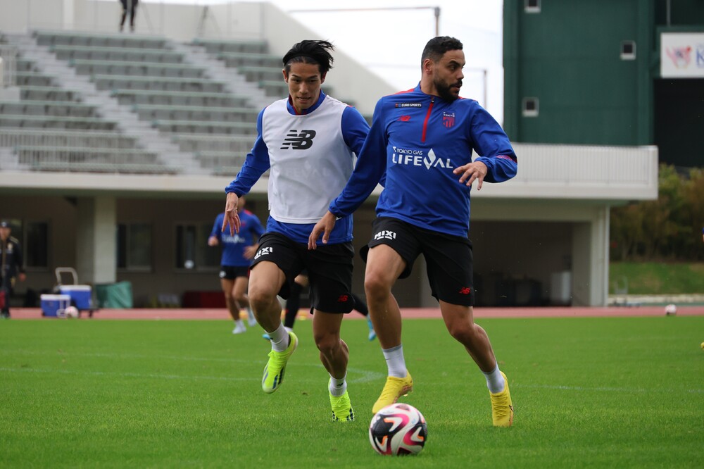 由於明天23日將與FC琉球進行練習賽,因此進行了模擬實戰的訓練。