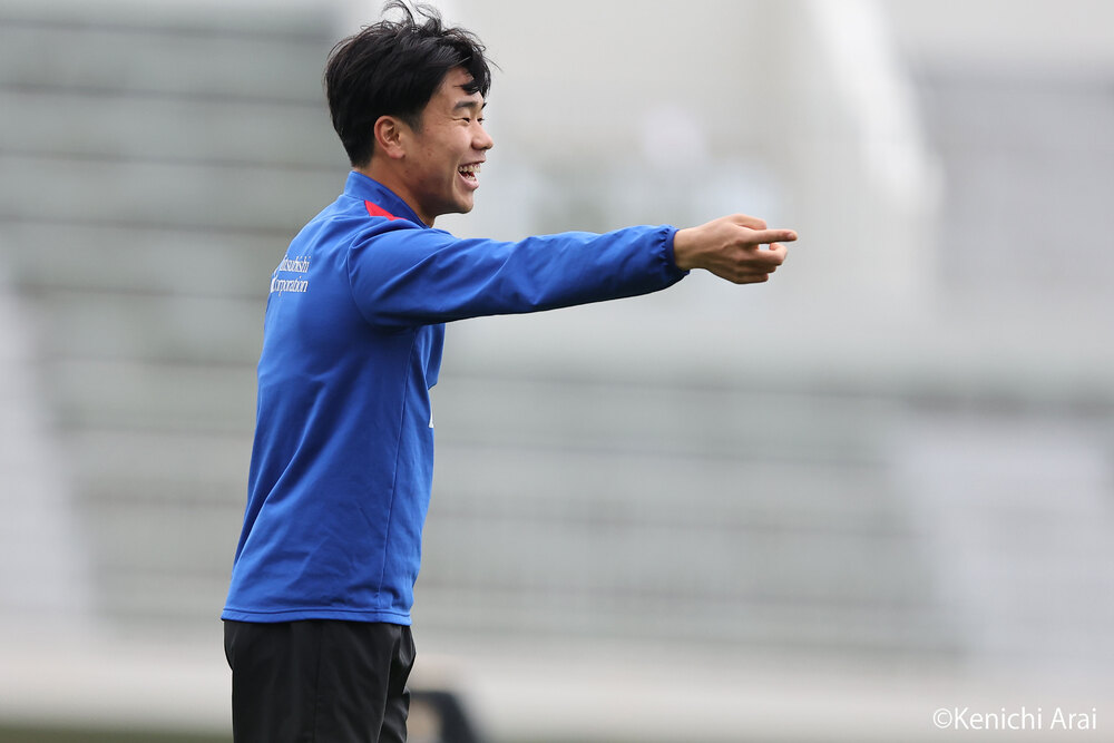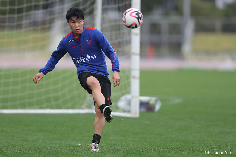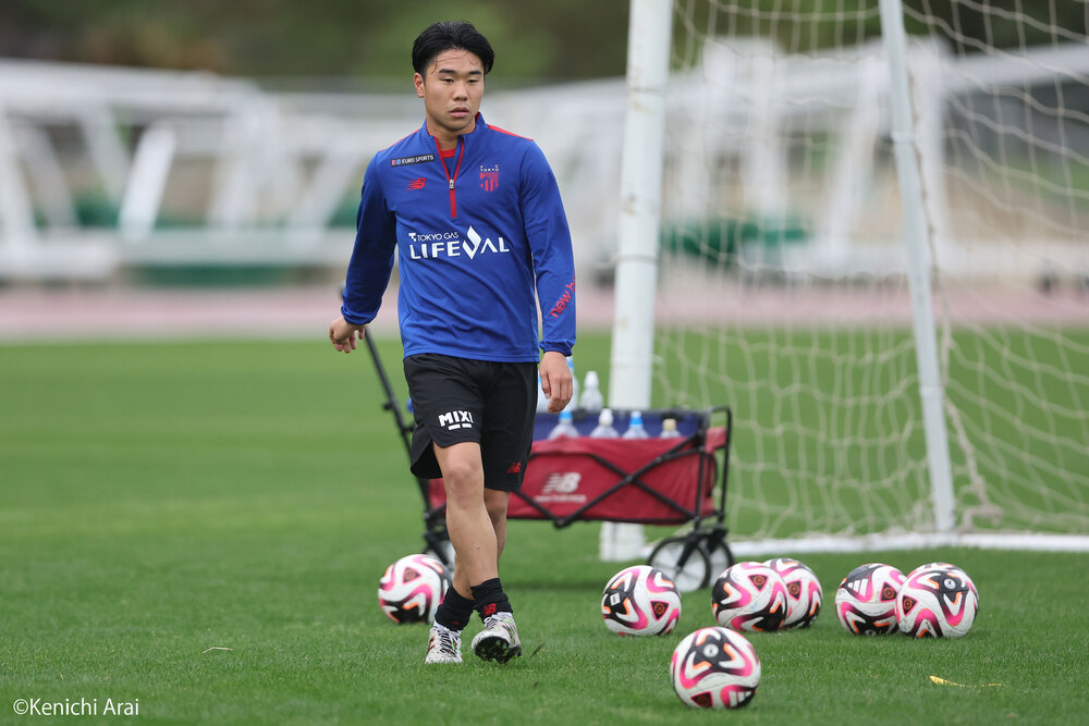 我認為大學畢業生已經不算年輕了,所以被視為即戰力來招募。現在的球隊中,防守中場的選手層非常厚實,我認為有很多高水準的選手。不過,我想毫不畏懼地展現自己的特長,目標是開幕戰首發,並成為球隊的核心,帶領東京奪得聯賽冠軍。我本來就是偏防守型的選手,擅長在球際爭奪、預判、回收第二波球,以及從對手腳下搶球。認識我學院時代的人大概會覺得我像是防守中場類型,但我想成為能在場上來回奔跑、在防守和進攻兩端都能做出貢獻的全能型選手。我認為防守時徹底搶斷也是進攻的起點,成功搶下球就等於突破了一個防守者。我希望在防守上展現強度,同時也具備推動進攻的能力。能夠用防守決定比賽,也能進球決定比賽,這樣的選手是我想成為的。雖然有點貪心。