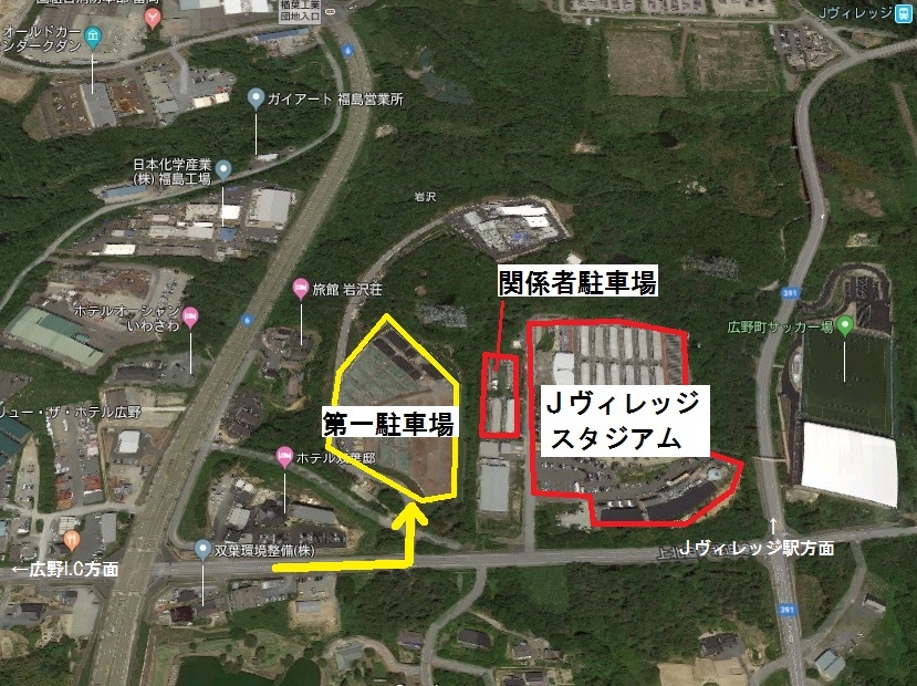 ※J村體育場內的停車場為關係者專用停車場。觀賽者請使用第一停車場。
