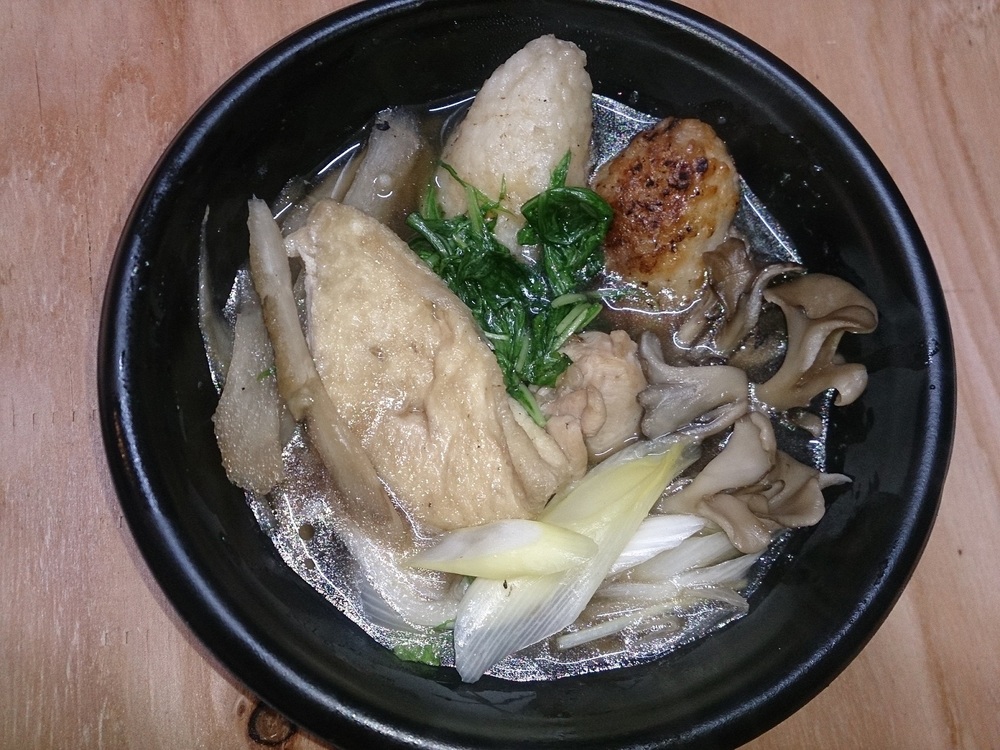 「每一根都是手工製作,香烤秋田米棒,搭配雞肉、牛蒡、油炸豆皮、舞茸、蔥等食材,用醬油湯底燉煮而成。暖心又暖胃!」