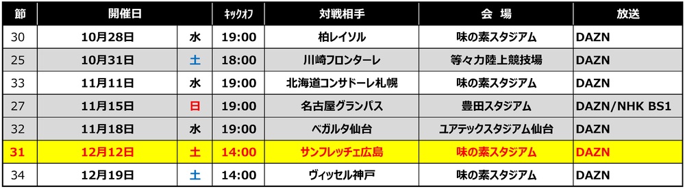 原本未定的明治安田生命J1聯賽 第31節 廣島戰,舉辦日期及開球時間已決定,特此通知。