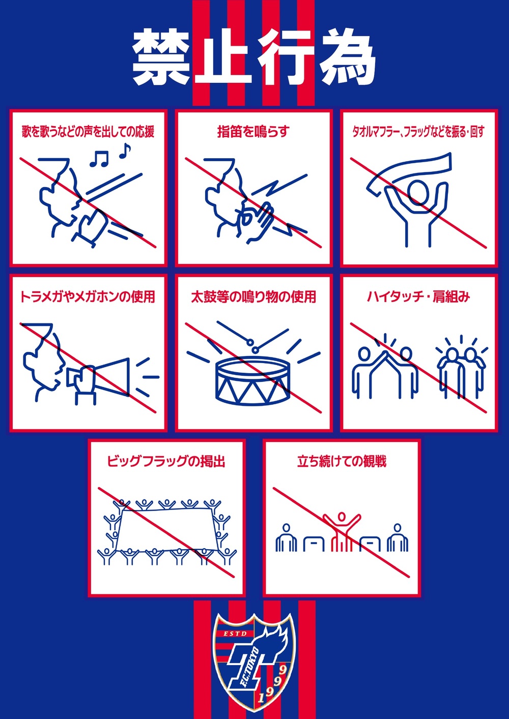 請遵守J聯盟統一禁止規則(J聯盟共通觀賽禮儀&規則)及FC東京足球比賽運營管理規定,以及「J聯盟新型冠狀病毒感染症應對指引」。