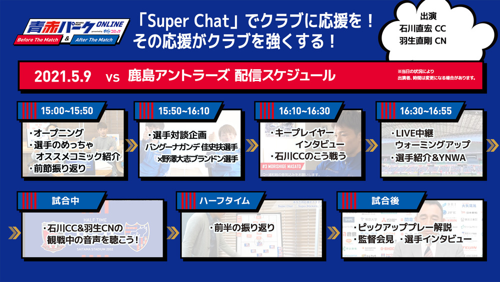 FC東京於J1聯賽的客場比賽及部分主場比賽的賽前賽後,在YouTube【FC東京官方頻道】舉辦LIVE直播企劃『AO-AKA PARK Online Before The Match/After The Match presented by mechacomic』。