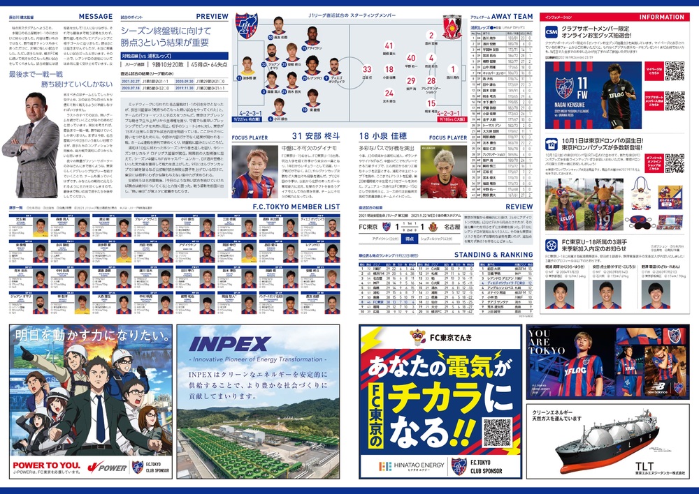 9月25日(周六) 2021明治安田生命J1聯賽 第30節 vs 浦和Reds(15:00開球/味之素體育館)的官方比賽日程表,現公告如下。