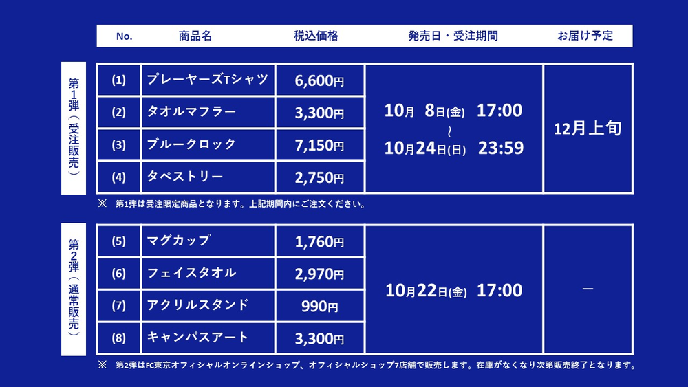 今日10月22日(周五)17:00預定發售的『FC東京×ブルーロック』聯名商品第2彈,因運輸業者發生延遲,導致送貨至商店的時間延後,官方線上商店的發售將延期。