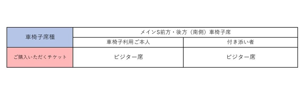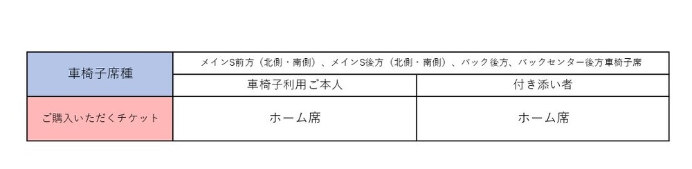 ※可穿著訪客隊制服及周邊商品觀賽的輪椅席種類僅限主看台S前方輪椅席(南側)及主看台S後方輪椅席(南側)。