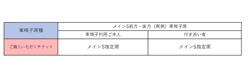 ※主看台S前方(北側・南側)輪椅席優先提供給持有身心障礙手冊者。當日使用狀況可能會安排至主看台S後方(北側・南側)輪椅席,敬請事先見諒。