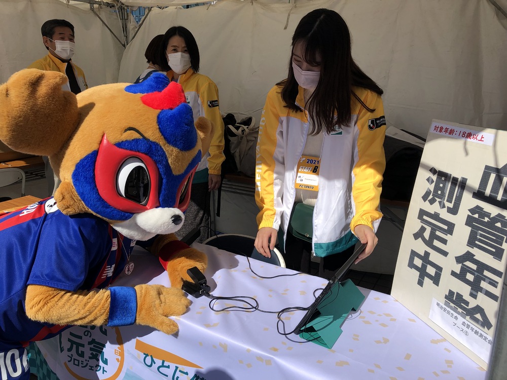 以「認識健康」為主題,將進行血管年齡測量,並設置使用TOKYO DOROMPA及FC東京選手(森重選手、長友選手、松木選手)等身大照片面板的拍照區,歡迎大家前來參觀。