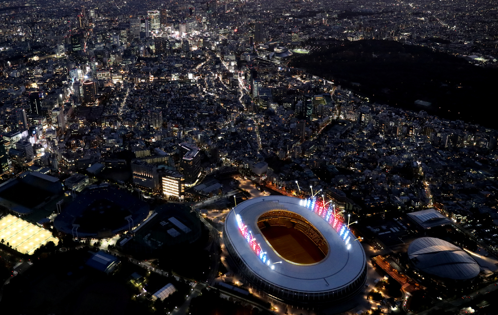 在國立的夜空中綻放的青紅色煙火與移動燈光,並搭配使用火焰效果襯托選手入場,將比賽氣氛推向最高點!