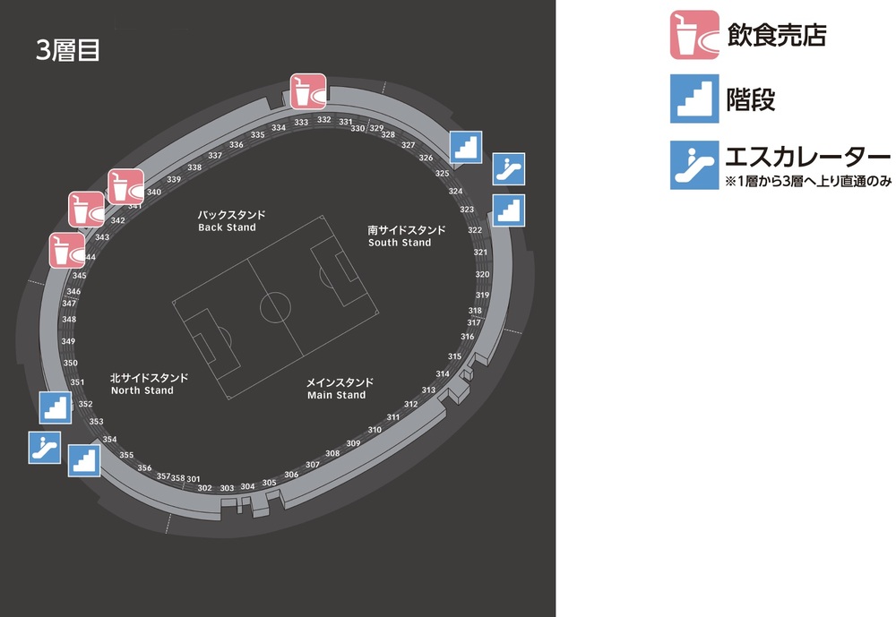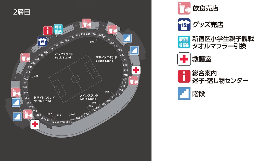 2022.4.28[比賽資訊] 4月29日(周五祝) 日本國立體育場的地圖說明 4月29日(周五祝) 2022明治安田生命J1聯賽 第10節 vs Gamba大阪(19:00開球/日本國立體育場)的體育場地圖為您介紹。 ◇各座位的前往方式請見這裡◇商品販賣店・扭蛋區的詳細資訊請見這裡◇飲食販賣店・遊樂設施的詳細資訊請見這裡 ・體育場周邊地圖 ◇俱樂部支持會員攤位的詳細資訊請見這裡◇Fansta攤位的詳細資訊請見這裡 ・第一層 ・第二層 ・第3層◇4/29(周五祝)G大阪的詳細請見這裡