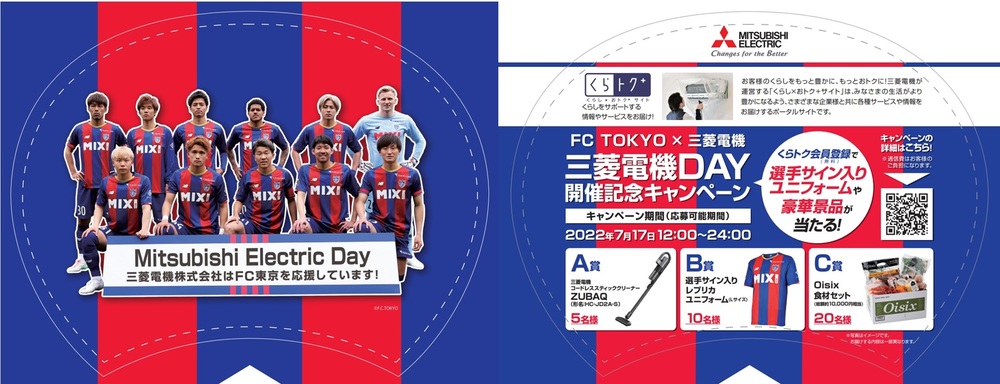 這次FC東京將於7月17日(周日) 2022明治安田生命J1聯賽第22節對戰Júbilo磐田(18:00開球/味之素體育館)舉辦由俱樂部贊助商「三菱電機株式會社」協辦的『三菱電機 Day』活動。