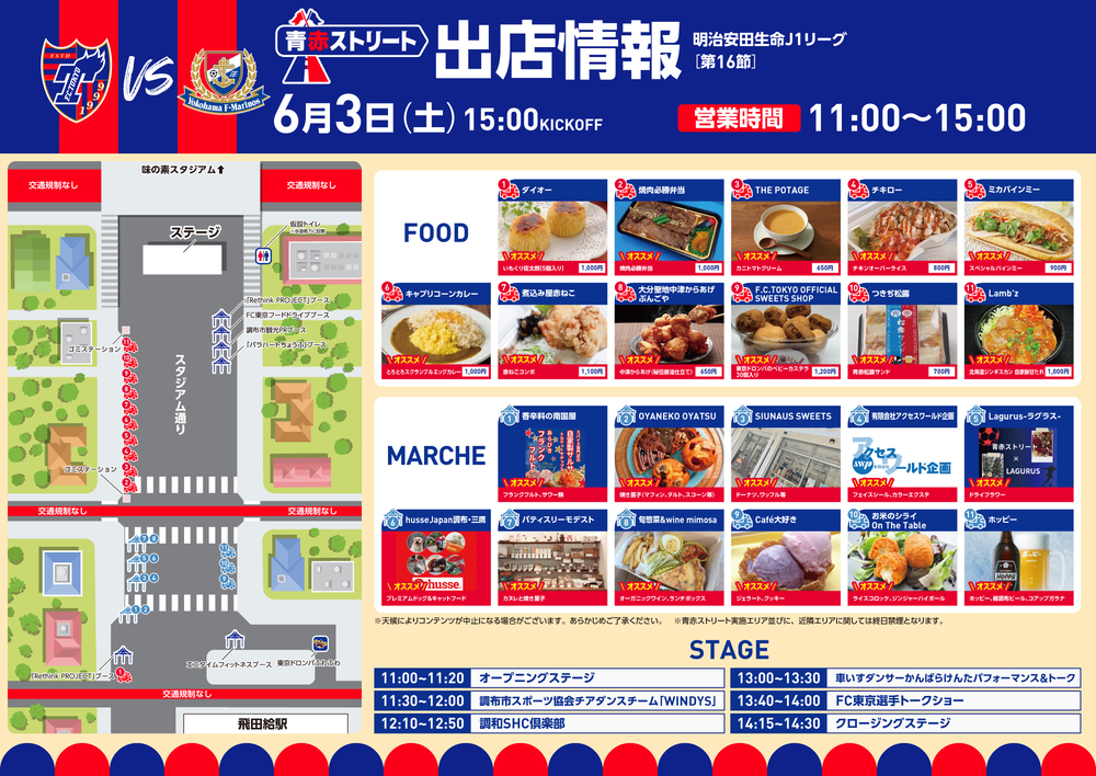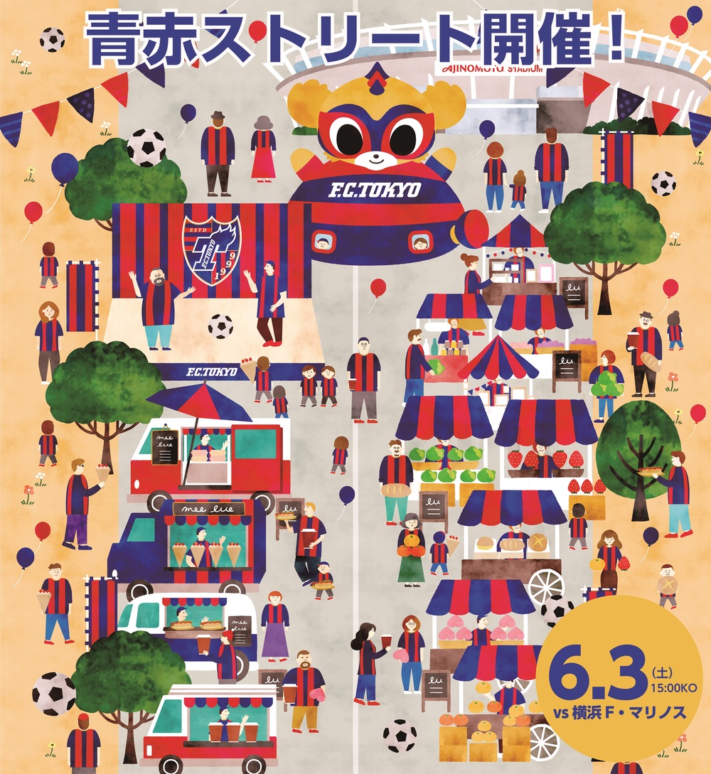 6月3日(周六) 2023 明治安田生命J1聯賽 第16節 vs 橫濱FMarinos(15:00開球/味之素體育館)舉辦的第2屆AO-AKA STREET各種活動資訊通知。