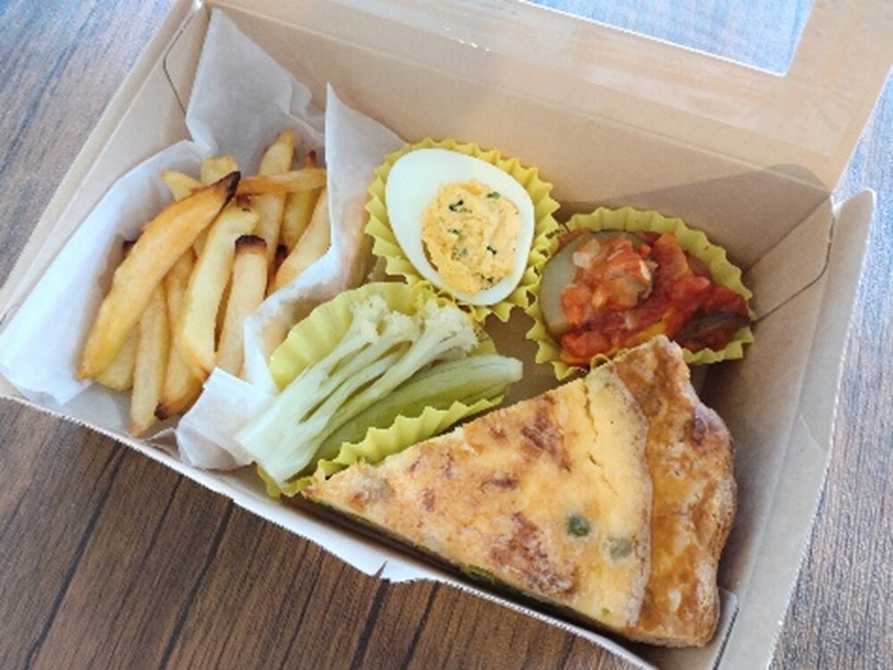 使用有機葡萄酒和調布產蔬菜的午餐盒。