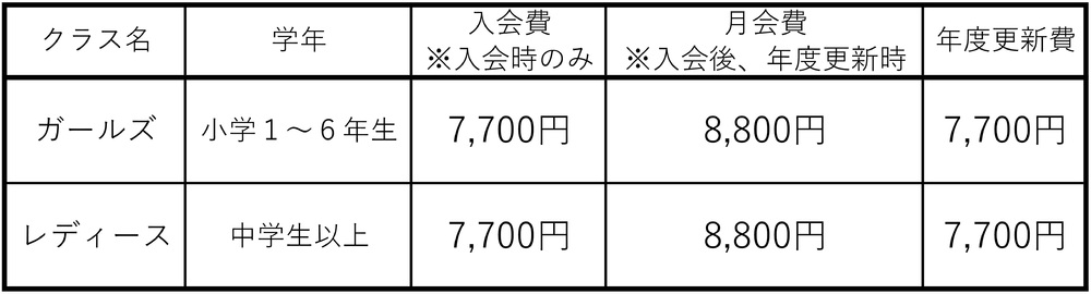 設有小學1~6年級的女孩班,以及從國中生到成人的女性班。