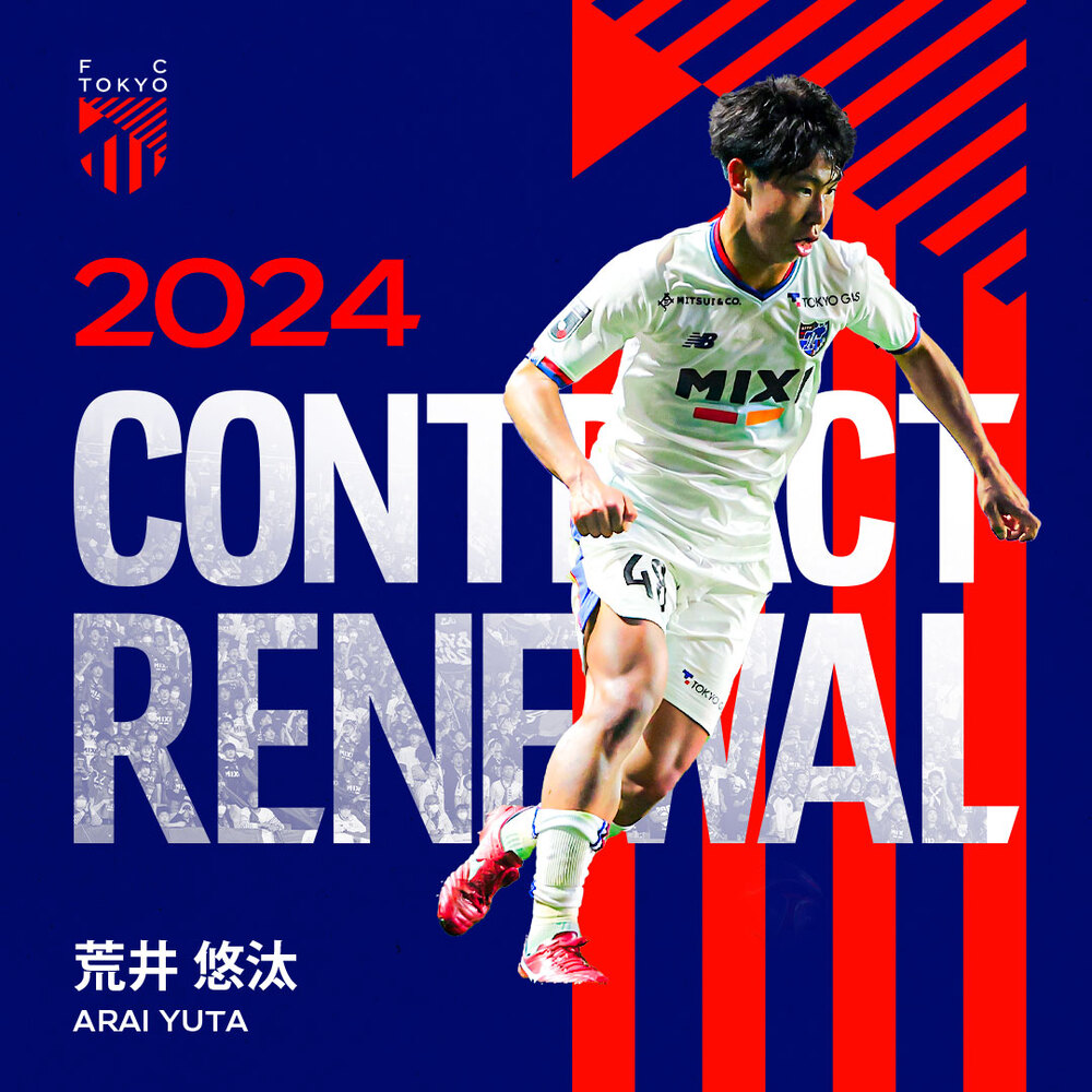 這次FC東京宣布已與荒井悠汰選手達成2024賽季的合約。